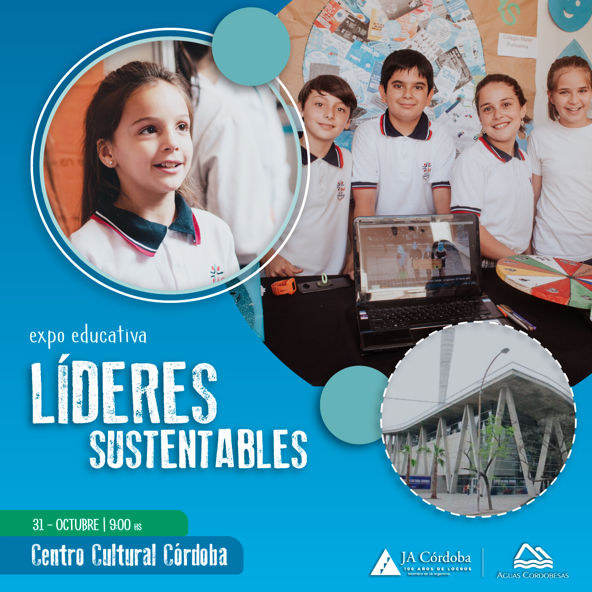 El próximo jueves 31 de octubre, más de 500 estudiantes de colegios primarios y secundarios presentarán, en el Centro Cultural Córdoba, ubicado en  Av. Poeta Lugones 401, los proyectos que desarrollaron en el marco de los programas Embajadores del Agua y Sustentics, iniciativas educativas de Aguas Cordobesas junto a la Fundación Junior Achievement.