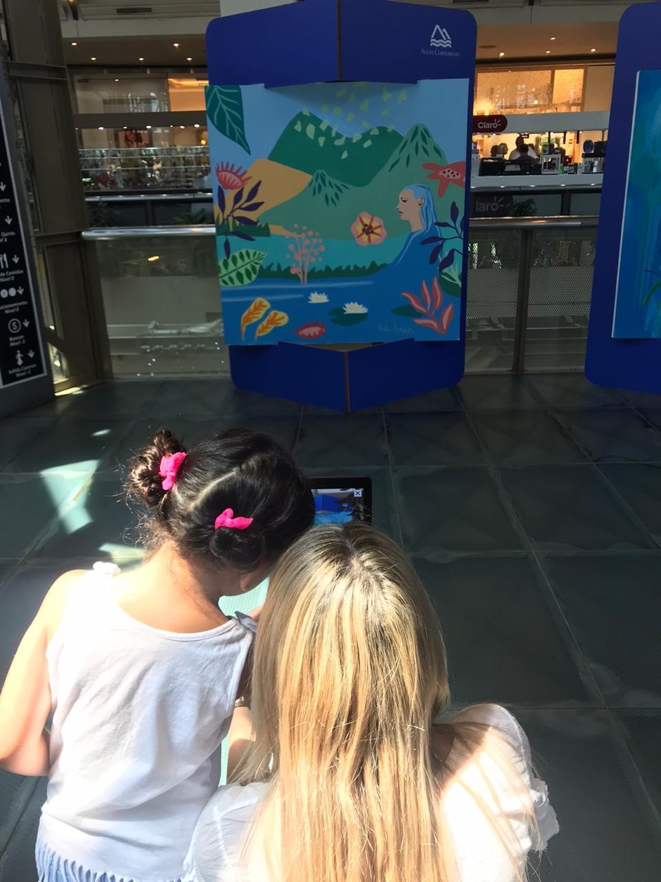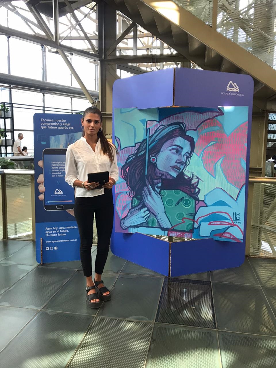 En el descanso de ascensores del segundo nivel, podrán encontrar las obras realizadas en vivo durante la Semana del Agua por los artistas locales Sol Martinez, Anita Rizzi y Mëx Zapata, quienes en cada pincelada expresaron el compromiso que nos une bajo el concepto: “AGUA HOY, AGUA MAÑANA, AGUA EN EL FUTURO. UN BUEN FUTURO”. Estas obras de arte hoy continúan expandiendo su mensaje a través de la APP “Experiencia Aguas Cordobesas” con la cual podrán escanear las pinturas y e interactuar con ellas en forma virtual.